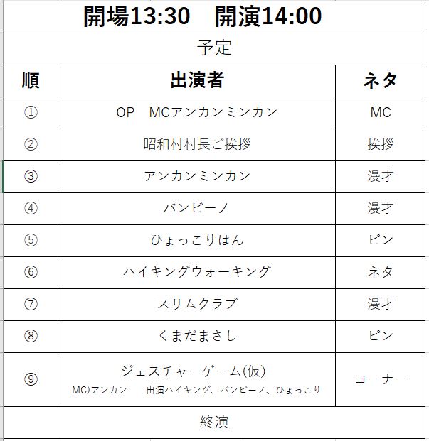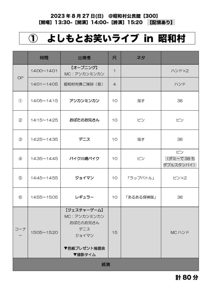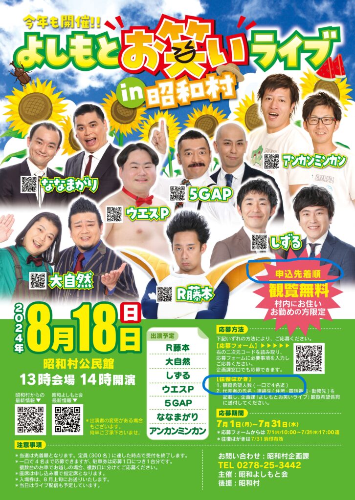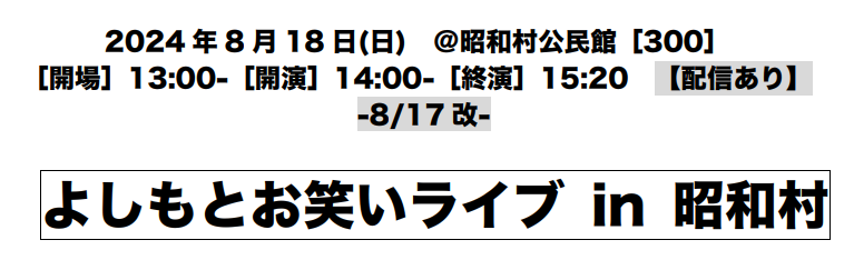昭和村主催 よしもとお笑いライブ 令和5年8月27日 昭和よしもと会
