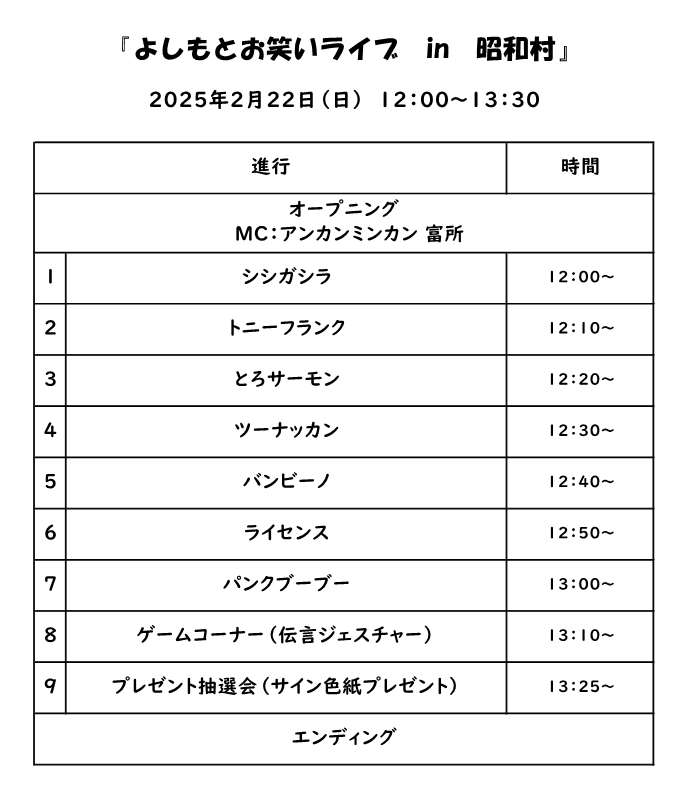 昭和村主催 よしもとお笑いライブ 令和5年1月29日終了