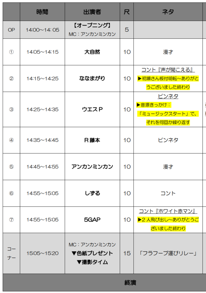 12時00分より開演予定でしたが関越自動車道の事故渋滞のため、芸人さんの到着が遅れています。